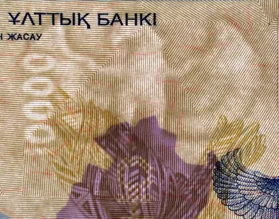 На них присутствует водяной знак в виде мифической птицы Самрук и цифры 10000, которые хорошо просматриваются на просвете. Если изменить угол наклона, защитный элемент в виде изображения голубя из зелёного превратится в золотой.