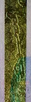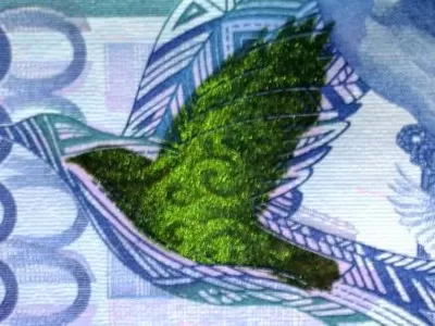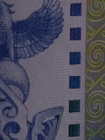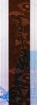 Что касается защитной нити, если банкнота изменит угол наклона, то нить из коричневой превратится в золотую.
