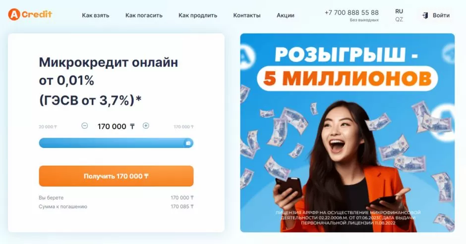 В целом, Acredit представляется как доступный и удобный вариант для тех, кто ищет быстрый микрокредит, либо кому требуется взять кредит с плохой кредитной историей и просрочками в Казахстане.
